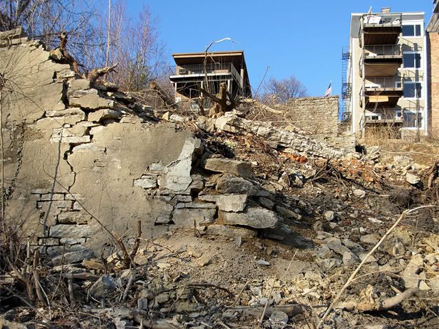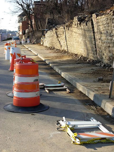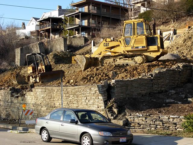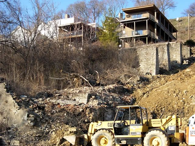 Of special note is the demolition of some of the remnant piers of the Mount Adams Incline, which line the western portion of the site.